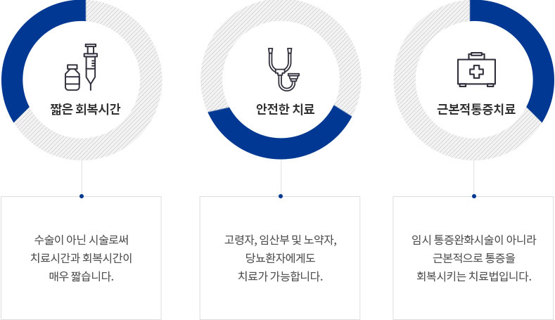 본원에서는 높은 농도의 포도당액을 통증부위에 주입하여 조직을 자극해서 조직 치유를 합니다.