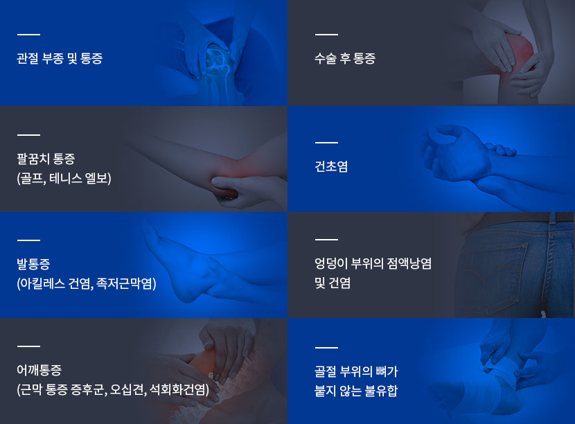 통증을 완화하고, 혈액순환에 관여하는 물질을 증가시켜 조직재생에 효과를 나타냅니다.